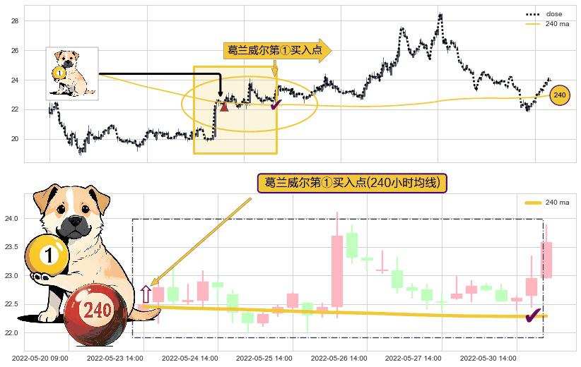 ⚀ 2022-05-23 14:00:00-小时显现 葛兰威尔均线 240小时均线 第买①入点 走势反转见底信号,后市看涨,买进信号