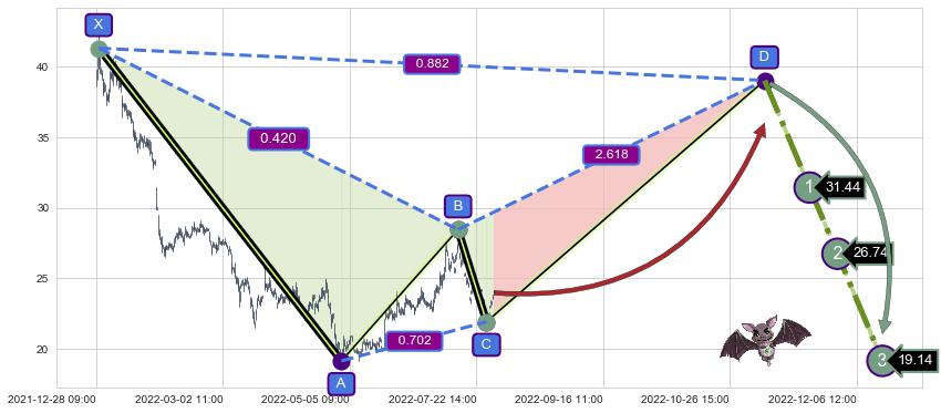 ➣ 未完成【蝙蝠】形态起点X: 12-28:14, 已到达C点: 08-03:14, 预测最终D点: 11-07:14, 共1051交易小时
