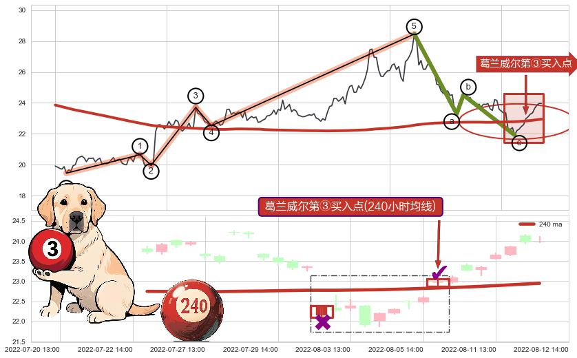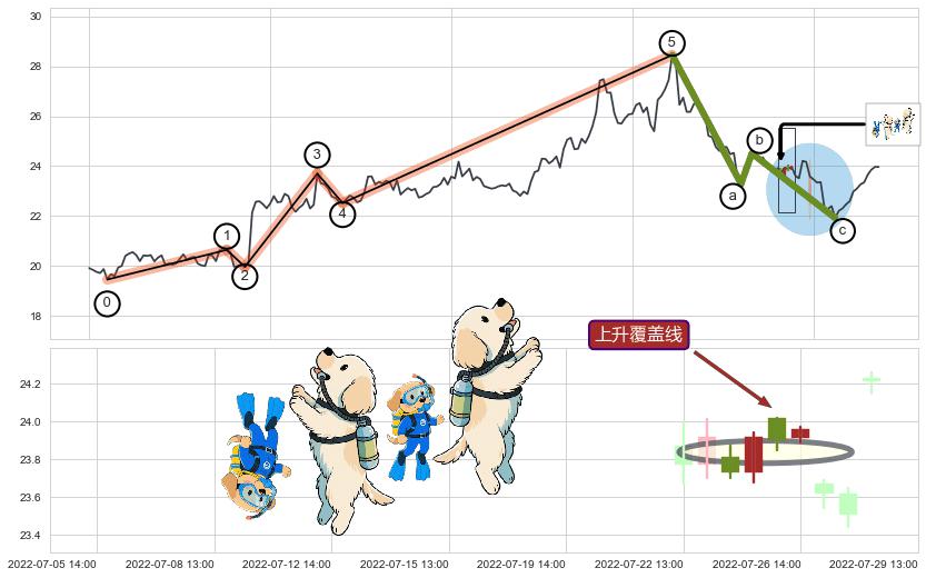 从2022-07-04 13:00至2022-08-03 14:00,共包含46个小时,阶段股价下跌-25.42%,阶段股价变动位移路程比: 1 : 2