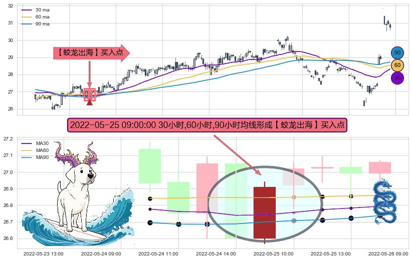 形态多维评估: ⚀ 2022-05-25 09:00:00小时显现 30小时-60小时-90小时均线 【蛟龙出海】买入点 看多信号,后市看涨,买入