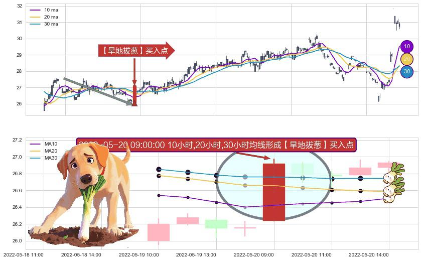 形态多维评估: ⚀ 2022-05-20 09:00:00小时显现 10小时-20小时-30小时均线 【旱地拔葱】买入点 看多信号,后市看涨,买入