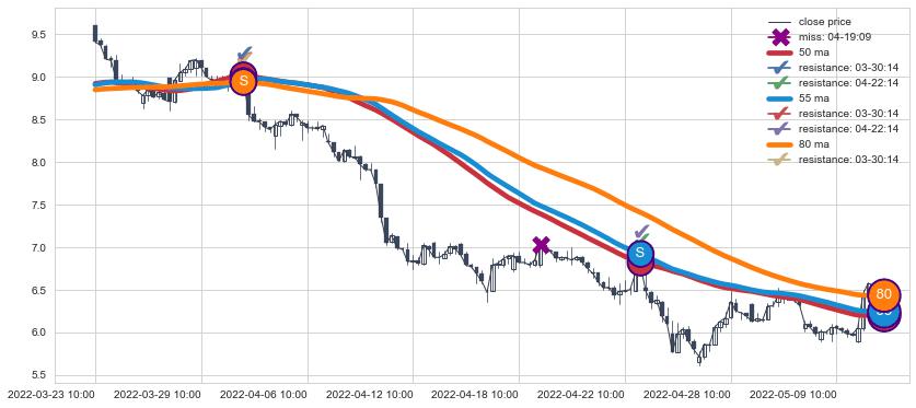 ⚃ 在破位点附近ma走势已有下垂迹象,稍后的走势中ma下降趋势明显,信号【可信度高】