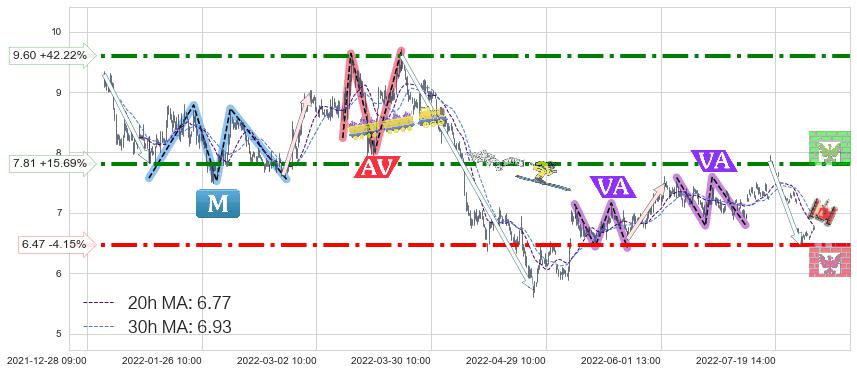 ♞ 20小时均线:6.77,30小时均线:6.93→ 快线<慢线