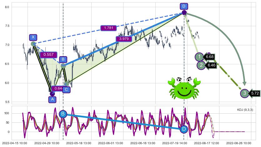 ➣ 已完成【螃蟹】形态起点X: 04-19:09, 终点D: 07-15:13, 共237交易小时