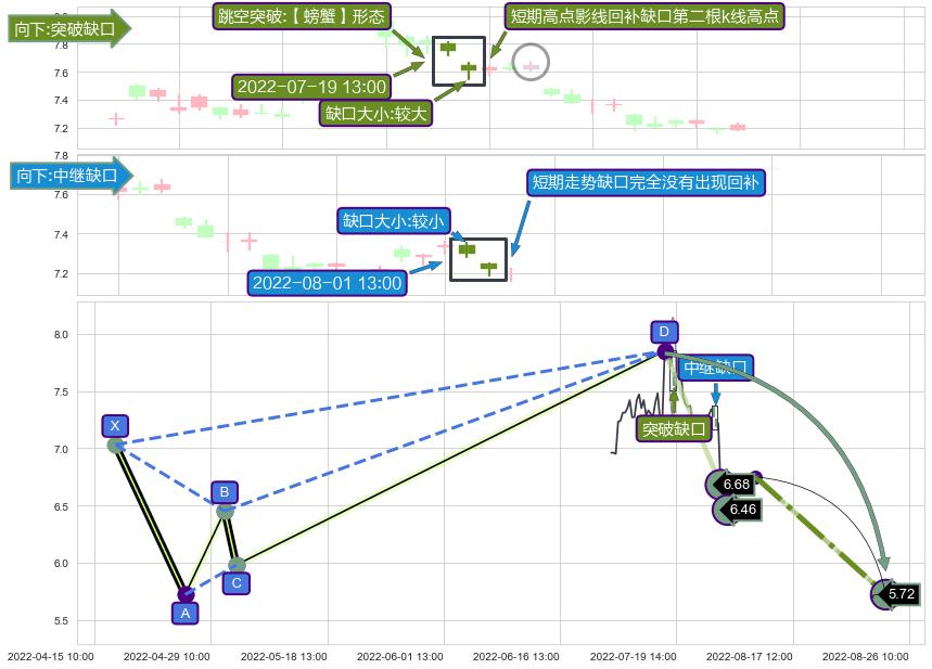 ➢ 2022-08-01 13:00形成:向下跳空【中继】缺口