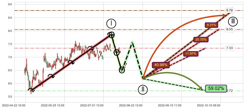 ♘ 支撑价格位5.89,可信任强度59.70%,距离最后交易2022-08-12 14:00形成的收盘价格6.75相差 -12.71%