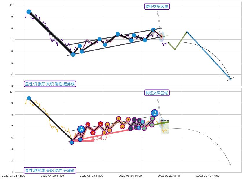 从2022-03-23 10:00至2022-04-27 09:00,共包含115个小时,阶段股价下跌-48.27%,阶段股价变动位移路程比: 1 : 2