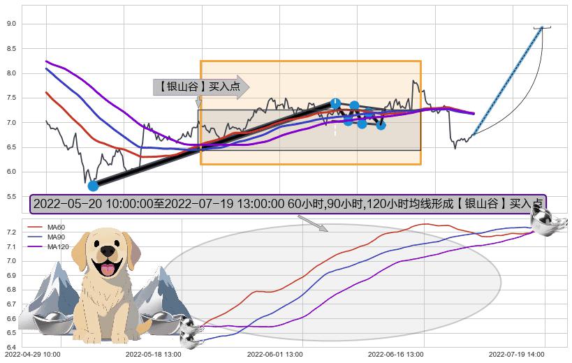 从2022-04-27 09:00至2022-07-15 14:00,共包含208个小时,阶段股价上涨33.17%,阶段股价变动位移路程比: 1 : 6,上涨趋势角度: 34.7