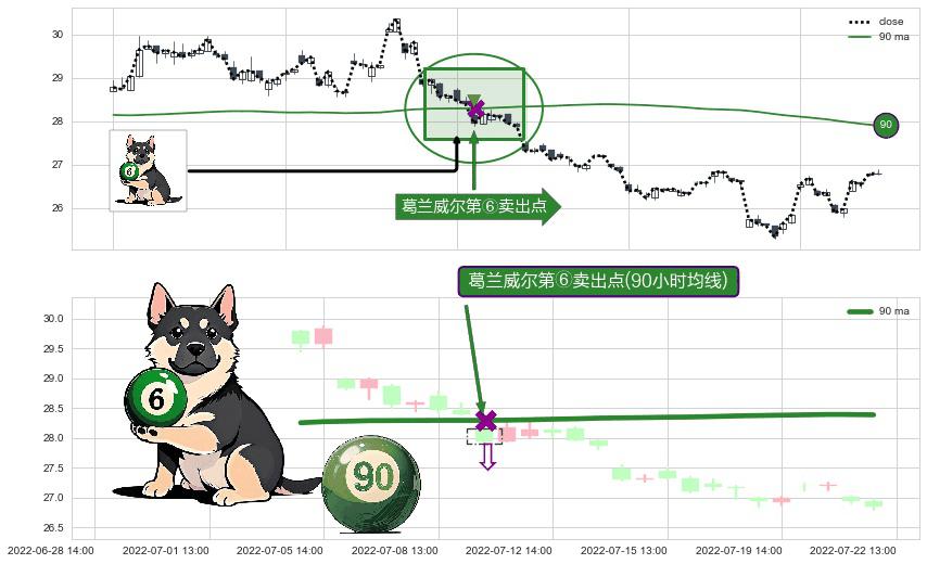 ⚀ 2022-07-11 13:00:00-小时显现 葛兰威尔均线 90小时均线 第⑥卖出点 走势反转见顶信号,后市看跌,卖出信号