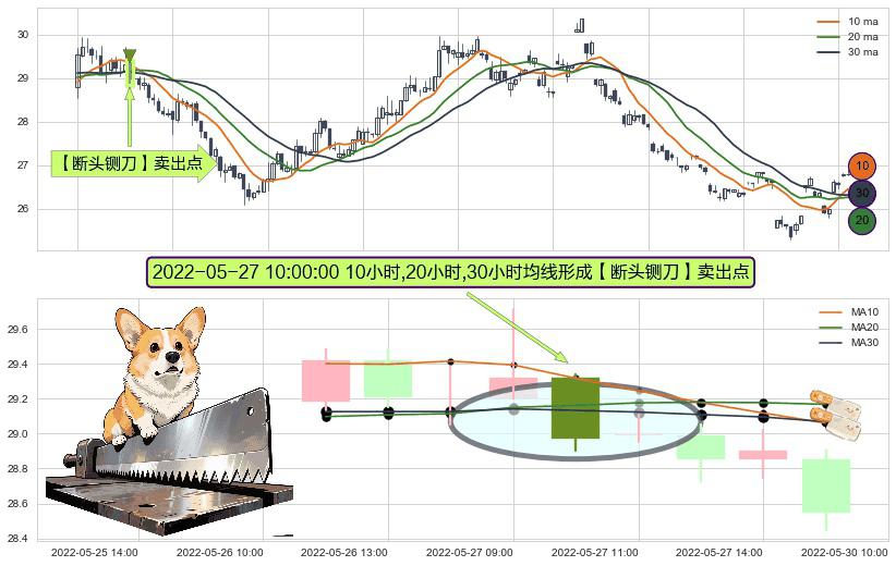 ⚀ 2022-05-27 10:00:00小时显现 10小时-20小时-30小时均线 【断头铡刀】卖出点 看空信号,后市看跌,卖出