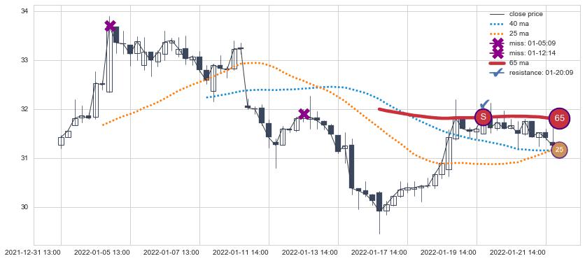 ⚃ 在破位点附近ma走势已有下垂迹象,稍后的走势中ma下降趋势明显,信号【可信度高】