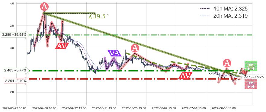 🦴 长线均值回复组合短线趋势跟踪[强阻力信号]2022-03-31 09:00-2022-08-12 13:00下跌趋势依然成立(下跌趋势跟踪依然存在),短线价格略微上行反弹(均值回复猜想),即将接近下跌趋势提供的未破位阻力价格:2.337。