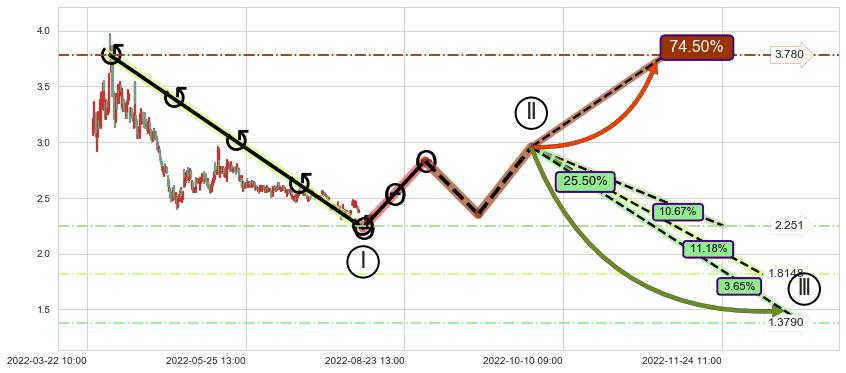 ➢ 循环浪继续向下【最低】位置(12-19:12, 1.3790),匹配聚类样本比例14.32%, 可能性概率3.65%