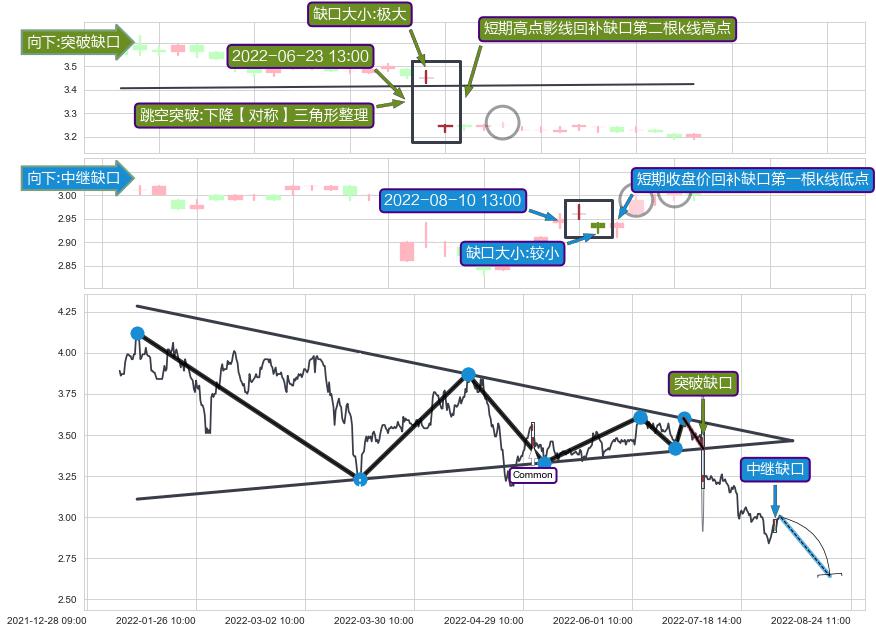 ➢ 2022-08-10 13:00形成:向下跳空【中继】缺口