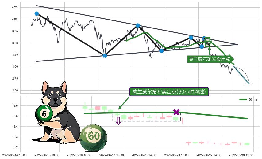 | 3 🅚:【死亡谷】卖出点 ➕ 📐:下降对称三角整理下行突破支撑位破位, 猜想持续下沉下跌,被突破的支撑位已变为阻力位 ☞ 看空信号 ⇥ 【均线】交织【图形】⇥ 综合量化分数: 33 | > |
