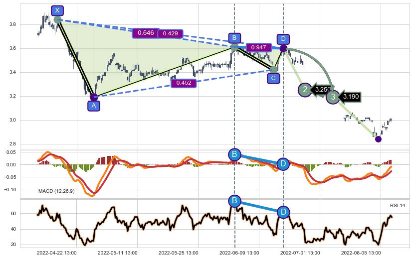 ➢ 谐波价格D点比B点高 ⤴,【MACD】指标D点比B点低 ⤵️
