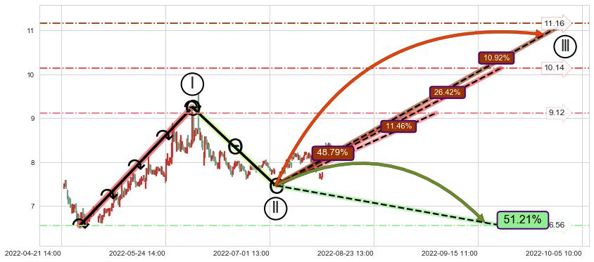 ➢ 循环浪继续向上【最低】位置(09-06:13, 9.12),匹配聚类样本比例23.48%, 可能性概率11.46%