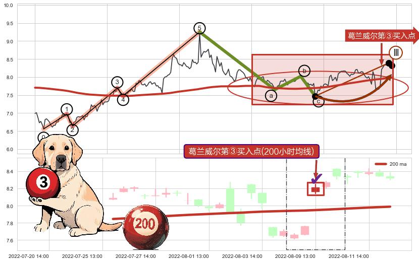 ➢ 收盘价(08-10:13: 8.34 )→再次回踩→第一根k线低点(08-03:14: 7.97 )
