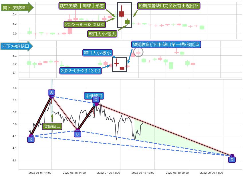 ➢ 2022-06-23 13:00形成:向下跳空【中继】缺口