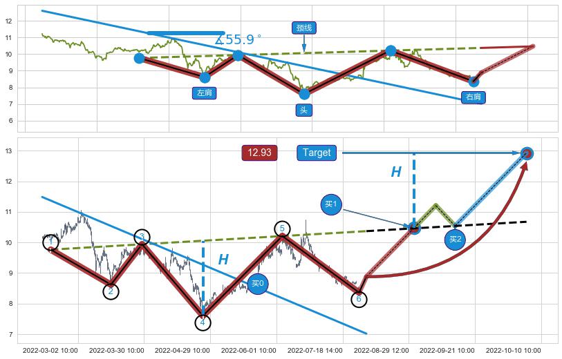 ➣ 最小反转涨幅→𝐇: 2.457 (头部与颈线垂直距离)