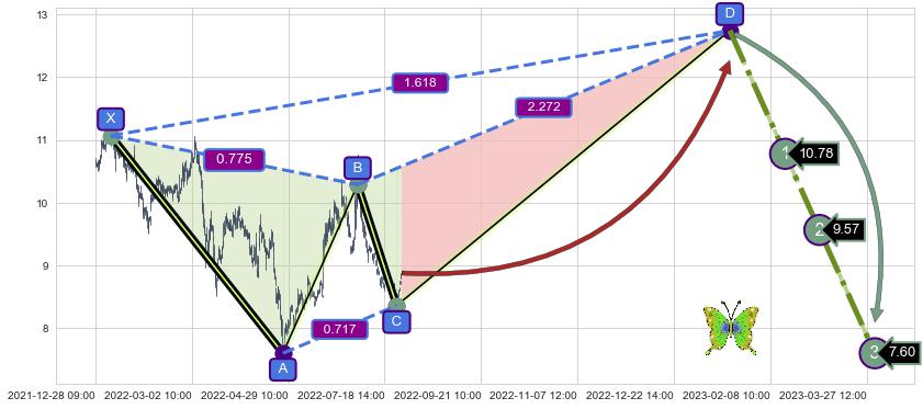 ➣ 未完成【蝴蝶】形态起点X: 01-06:11, 已到达C点: 08-04:13, 预测最终D点: 01-19:10, 共1284交易小时