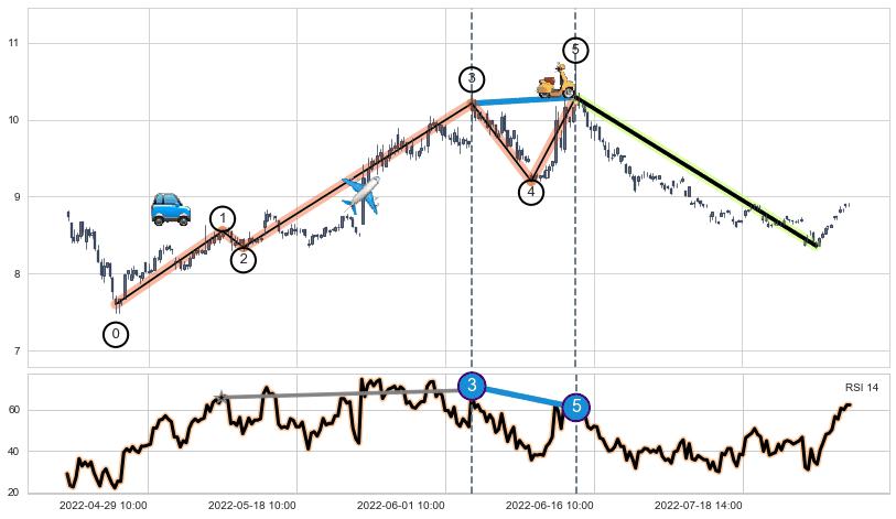➢ 第三,五驱动浪端点:【RSI】走势出现【常规背离 & 反转信号】背离程度99.00%,背离夹角角度38.7˚,背离程度较大