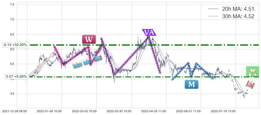 ♞ 20小时均线:4.51,30小时均线:4.52→ 快线<慢线