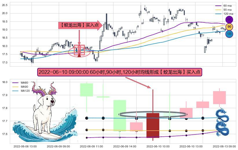 ⚀ 2022-06-10 09:00:00小时显现 60小时-90小时-120小时均线 【蛟龙出海】买入点 看多信号,后市看涨,买入