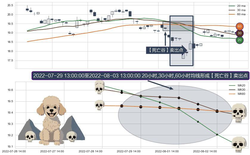 ⚀ 2022-07-29 14:00:00-小时至2022-08-03 13:00:00-小时显现 20小时-30小时-60小时均线 【死亡谷】卖出点 看空信号,后市看跌,卖出