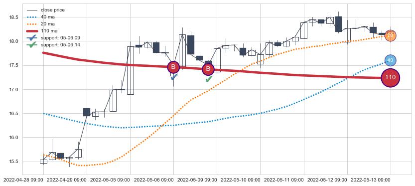 ⚃ 2022-06-10 09:00:00小时开盘价格在三条均线下收大阳线,收盘全突破均线,收盘股价上涨0.40%