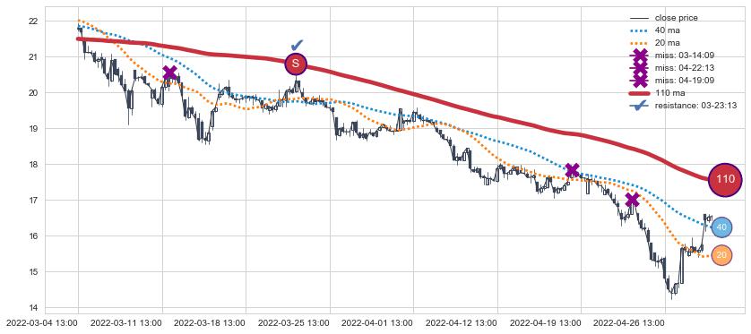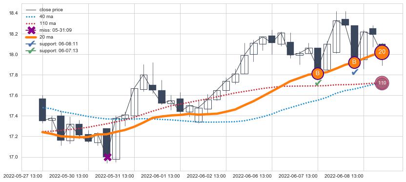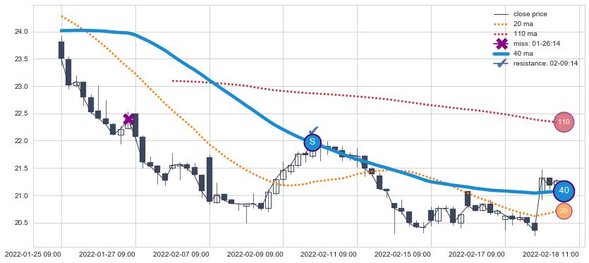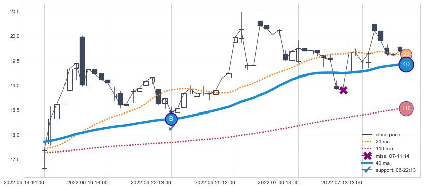 ⚃ 在破位点附近ma走势已有下垂迹象,稍后的走势中ma下降趋势明显,信号【可信度高】