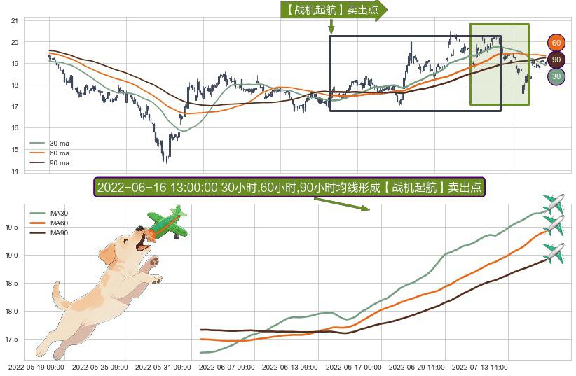 ⚀ 2022-05-31 13:00:00小时-2022-07-21 14:00:00小时显现 30小时-60小时-90小时均线 【战机起航】卖出点 看空信号,后市看跌,卖出