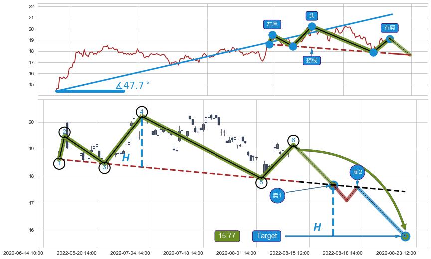 ➣ 最小反转跌幅→𝐇: 1.8883 (头部与颈线垂直距离)