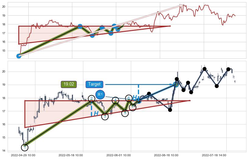➢ 收盘价(07-15:14: 19.61 )→回踩→第一根k线高点(07-13:14: 19.65 )