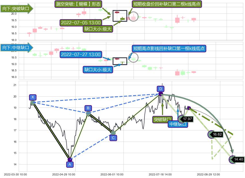 ➢ 【蝴蝶】形态 🔜 中继缺口 🔜 突破缺口 综合量化分数:46.09 【偏空】