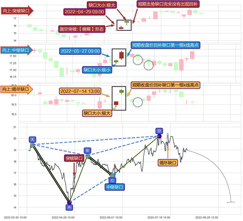 ➢ 2022-07-14 13:00形成:向上跳空【竭尽】缺口