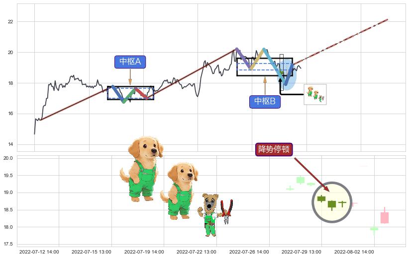 ➣ 【未完成】缠论 起点:04-28:13, 完成第1中枢A,完成第2中枢B,到达08-12:14