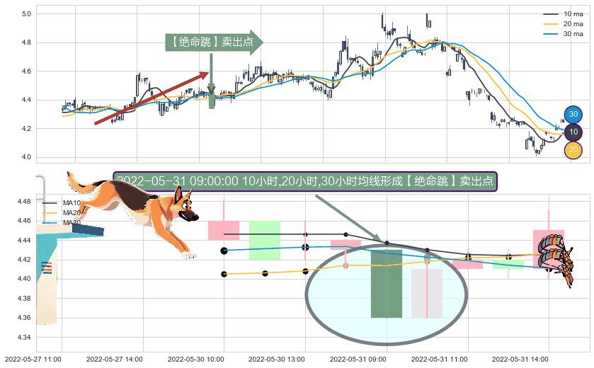 ⚀ 2022-05-31 09:00:00小时显现 10小时-20小时-30小时均线 【绝命跳】卖出点 看空信号,后市看跌,卖出