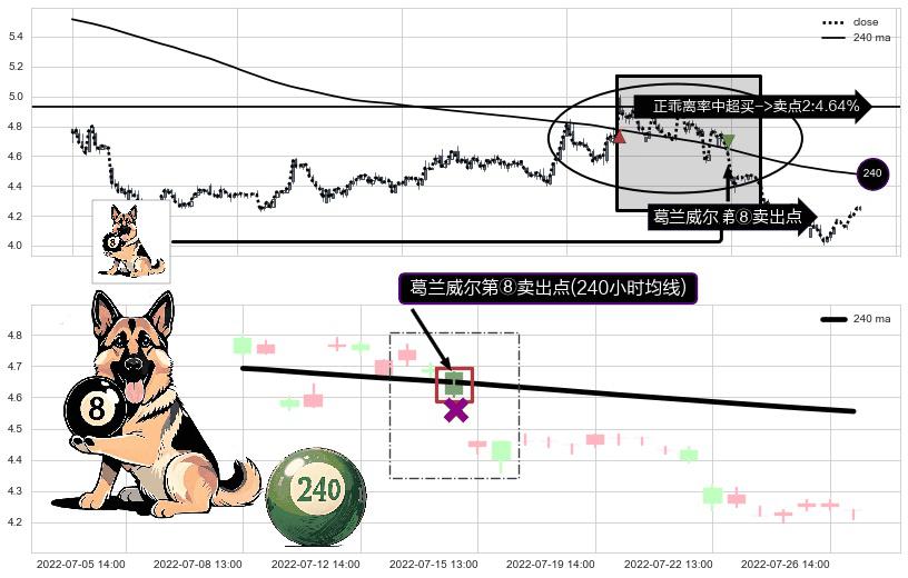 ⚁ 240小时均线 第⑧卖出点 属于 均线服从 信号,属于趋势运行的【常态】即信号期望为下降趋势的中继