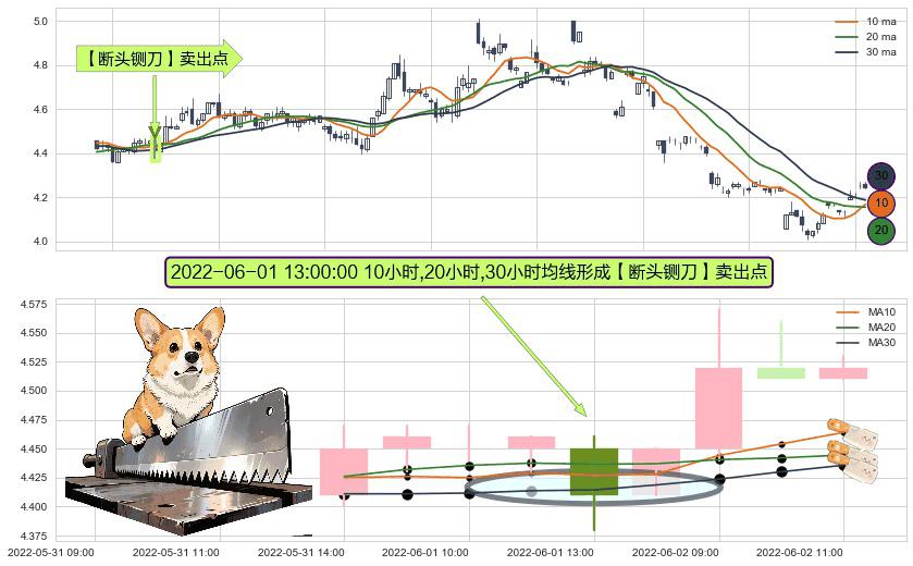 ⚀ 2022-06-01 13:00:00小时显现 10小时-20小时-30小时均线 【断头铡刀】卖出点 看空信号,后市看跌,卖出