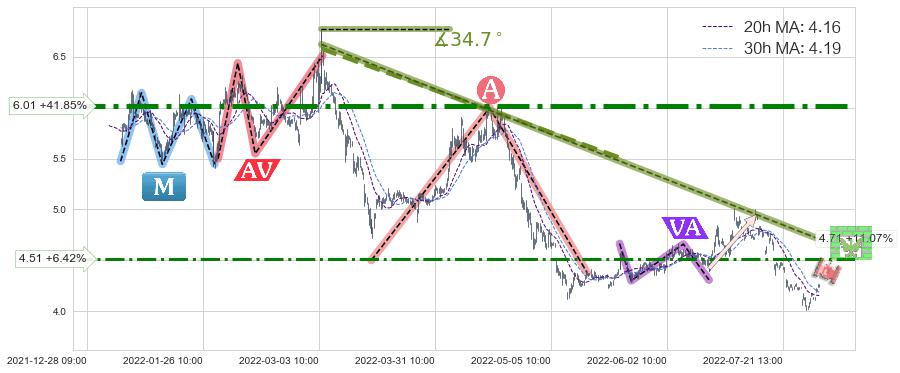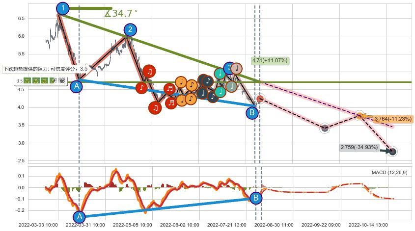 ♘ 阻力价格位4.51,可信任强度67.41%,距离最后交易2022-08-12 14:00形成的收盘价格4.24相差 +6.42%