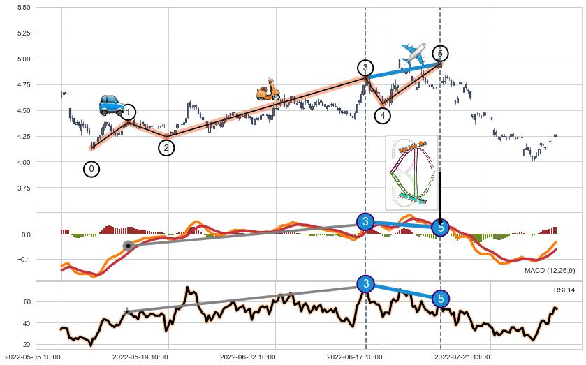 从2022-06-14 11:00至2022-07-05 14:00,共包含42个小时,阶段股价上涨11.68%,阶段股价变动位移路程比: 1 : 3