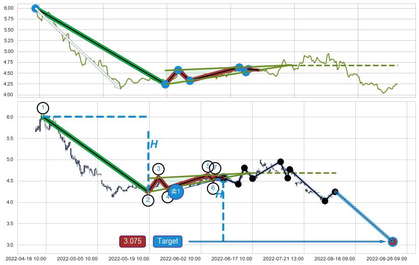 ➢ 最小中继整理跌幅→𝐇: 1.4900 (𝐇楔型旗杆的长度:楔型起点→顶点)