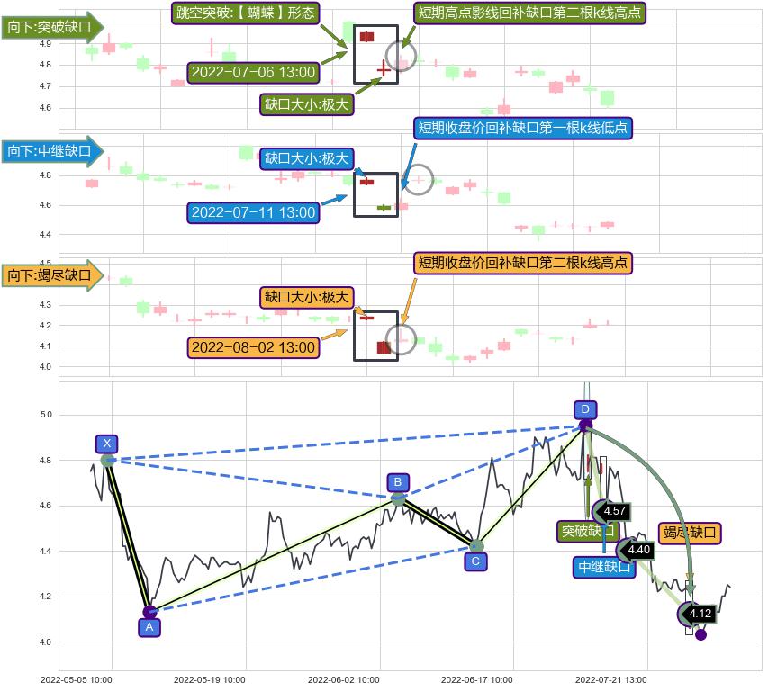 ➢ 2022-08-02 13:00形成:向下跳空【竭尽】缺口