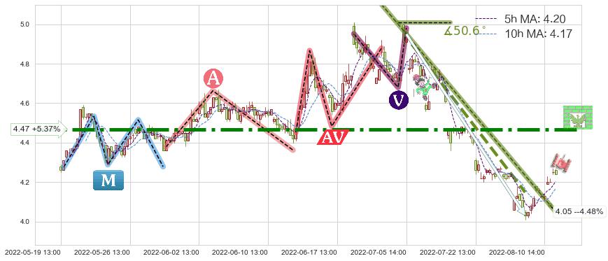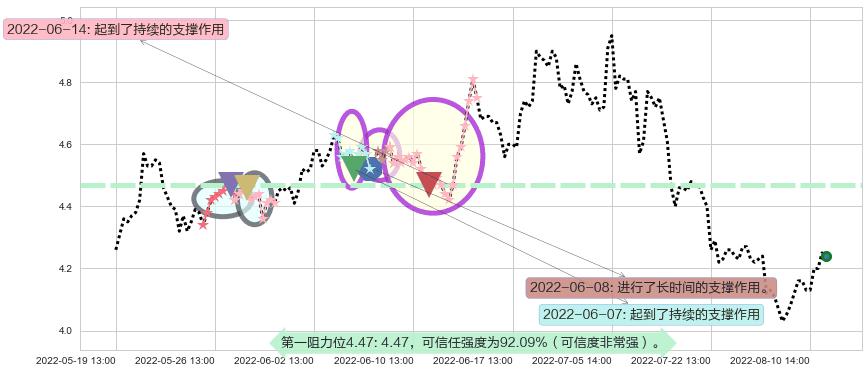 ♘ 阻力价格位4.47,可信任强度92.09%,距离最后交易2022-08-12 14:00形成的收盘价格4.24相差 +5.37%