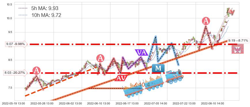 ♞ 5小时均线:9.93,10小时均线:9.72→ 快线>慢线