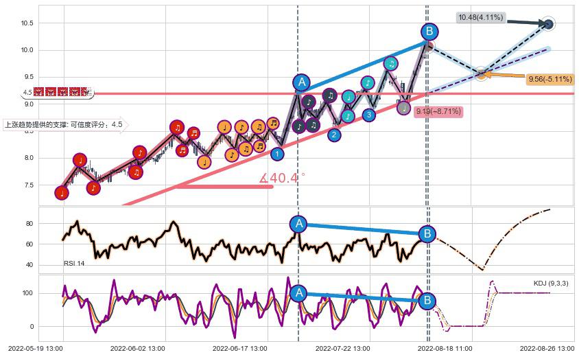 ➢ 预测:2022-08-19 10:00,【小幅回撤】稳定目前上涨趋势的前提下,预测价格:9.56