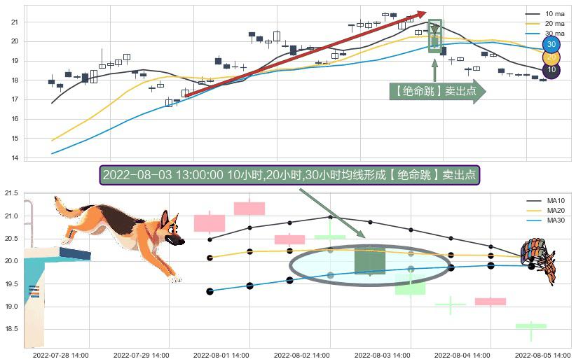 ⚀ 2022-08-03 13:00:00小时显现 10小时-20小时-30小时均线 【绝命跳】卖出点 看空信号,后市看跌,卖出