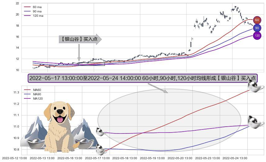 ⚀ 2022-05-17 14:00:00-小时至2022-05-24 14:00:00-小时显现 60小时-90小时-120小时均线 【银山谷】买入点 看多信号,后市看涨,买入