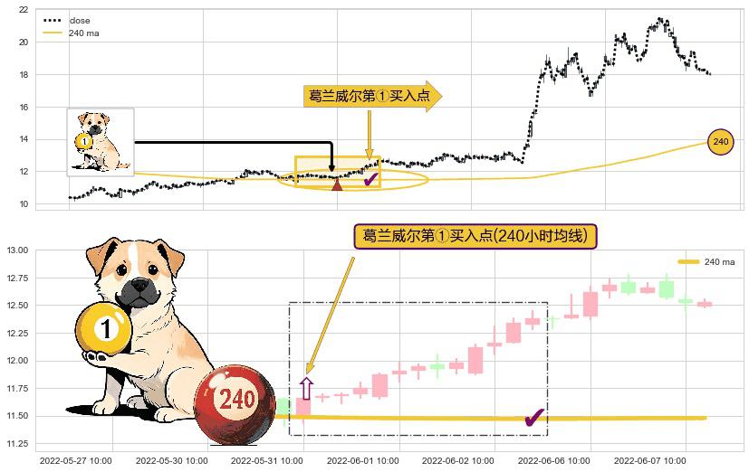 ⚀ 2022-05-31 10:00:00-小时显现 葛兰威尔均线 240小时均线 第买①入点 走势反转见底信号,后市看涨,买进信号